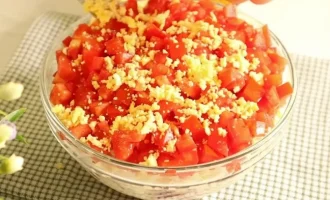 - Főzzük meg a tojásokat, főzzük 10 percig, hűtsük ki, és vágjuk fel ugyanúgy, mint a burgonyát.